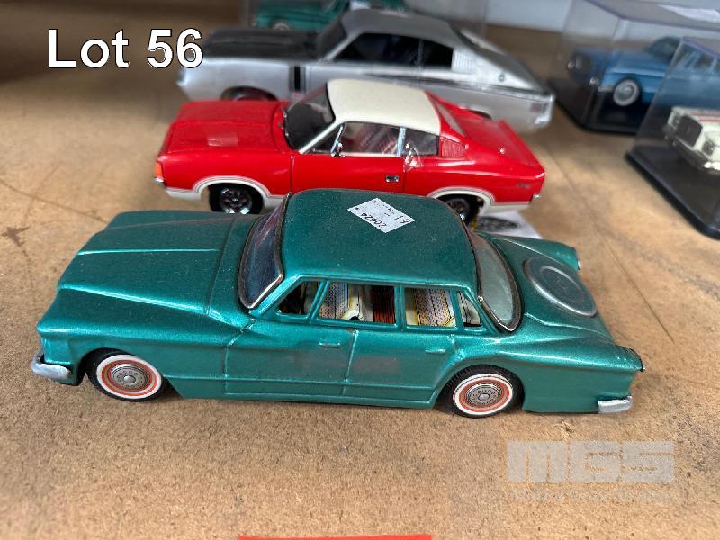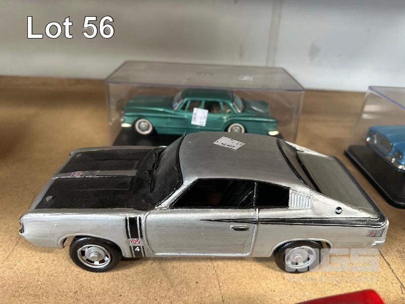 1971 CHRYSLER CHARGER VH RT E49, TINPLATE MERCURY SILVER, 1:18 SCALE, 1973 CHRYSLER VJ VALIANT CHARGER, RED/WHITE, 1:18 SCALE, 1961 CHRYSLER VALIANT R SERIES, RV, TINPLATE GREEN BANDI SEDAN & 1962 VALIANT PLYMOUTH TIN GREEN