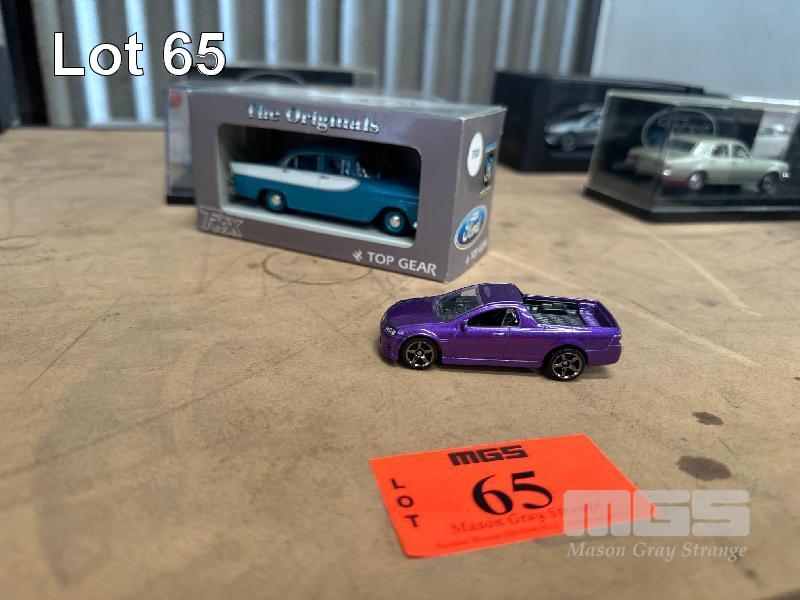 1974 TORANA SL SEDAN, RESIN, CHROME, YELLOW, 1948 FX HOLDEN DARK BLUE ROOF/LIGHT BLUE RED QUARTER PANELS, 1960 HOLDEN FB SPECIAL SEDAN, BLUE/WHITE ROOF, 2010 VE SS-V HOLDEN UTE, PURPLE, 1:64 SCALE