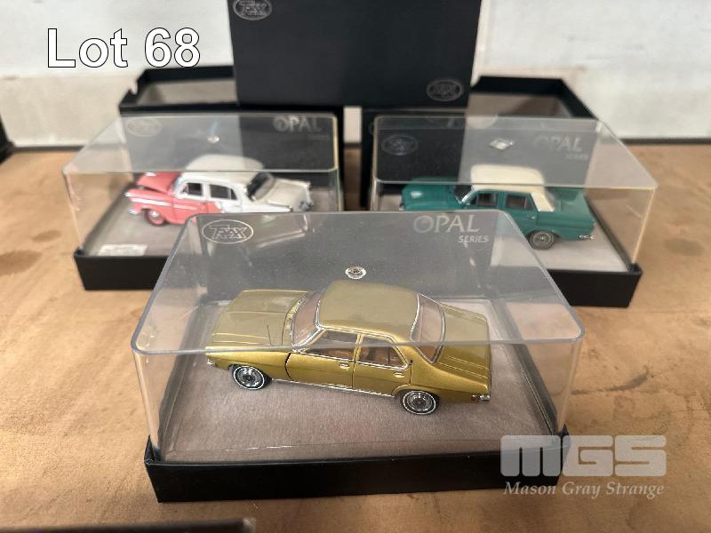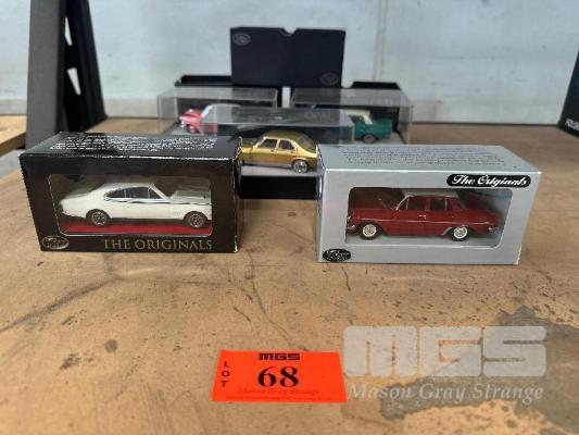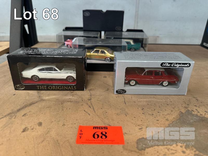 1958 FE HOLDEN SPECIAL SEDAN, PINK/WHITE ROOF, 1962 EJ HOLDEN SPECIAL SEDAN, DARK RED, 1970 HG HOLDEN MONARO GTS 350, WHITE COUPE, 1:43 SCALE, 1963 EH HOLDEN SPECIAL SEDAN, GREEN/WHITE ROOF, 1:43, 1971 HQ HOLDEN PREMIER SEDAN, GOLD