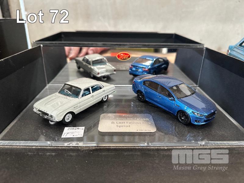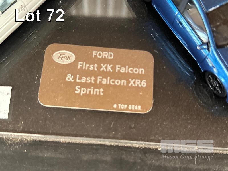 FIRST XK FORD FALCON & LAST XR6 SPRINT, GREY/BLUE ON MOUNT IN CASE