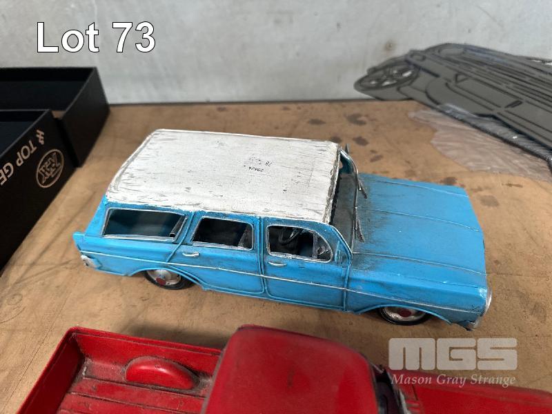 TIN 1963 EH WAGON, BLUE/WHITE ROOF & TIN 1963 EH UTE, RED