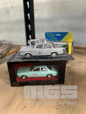 HOLDEN MONARO HK GTS 1968 BATHURST WINNER, HOLDEN FE SEDAN, NSW POLICE IN BLISTER, 1:43 SCALE, 1971 HQ BELMONT FRANKSTON TAXI SEDAN, LIGHT BLUE & 1966 HR HOLDEN PREMIER SEDAN, SILVER/BLACK VINYL ROOF