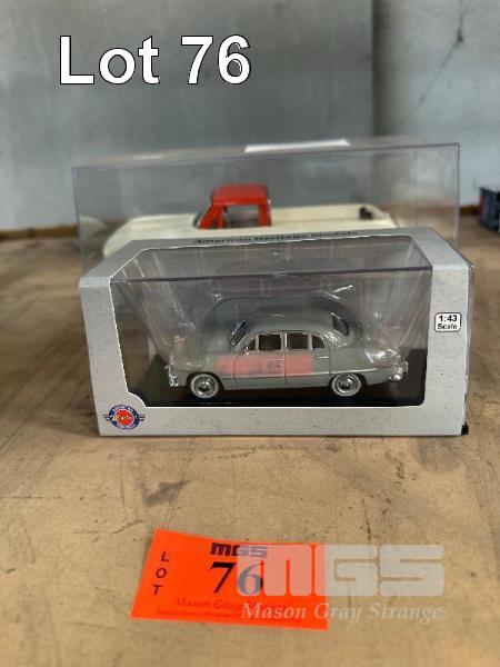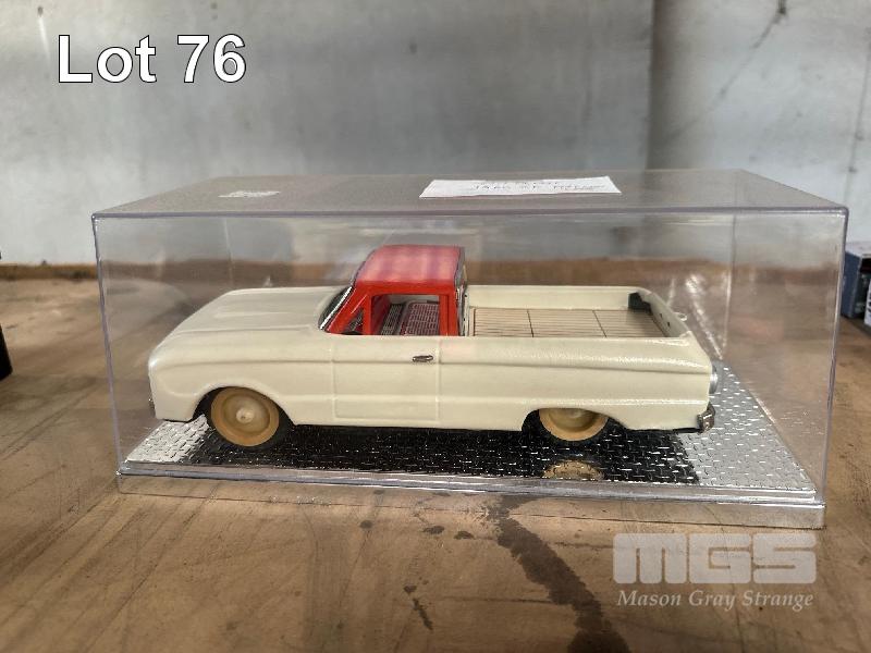 AMERICAN HERITAGE MODEL 1950 FORD 4 DOOR SEDAN, V8 CUSTOM SINGLE SPINNER, GREY & 1960 TIN PLATE XK FALCON UTE