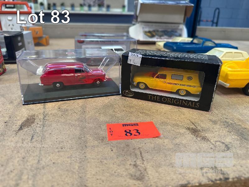 1963 EH HOLDEN VAN, RAA ROAD SERVICE, YELLOW, HOLDEN FG PANEL VAN, RED ROYAL MAIL, 1:48 SCALE, 1968 KINGSWOOD WAGON, ERMINE WHITE, 1:43 SCALE & 1970 HG PREMIER WAGON, BURNISHED BRONZE