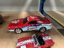 1995 FORD MUSTANG 2 DOOR RACE CAR, TURBO POWER, RED WITH WHITE DECAL, PLASTIC, BATTERY POWERED, COBRA 2 DOOR COUPE, RED WITH WHITE STRIPES