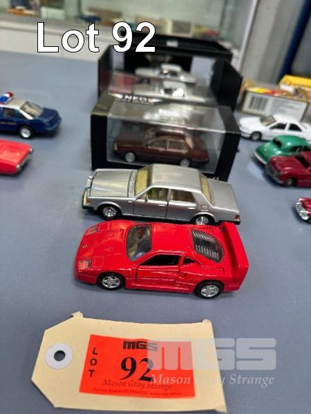 1988 ROLLS ROYCE SILVER SPIRIT SEDAN, MATCHBOX SUPER KING, 1:43, 1987 TO 1992 FERRARI F40 SPORTS CAR COUPE, RED, 1:39 SCALE, 2000 MITSUBISHI GALANT GLX SEDAN, BROWN, 1974 HOLDEN PREMIER 25TH ANNIVERSARY SILVER, 1:43