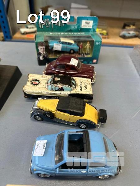 1950'S HIGHWAY PATROL POLICE CAR, GALANT, BLUE, HARRY POTTER FORD ANGUILLA 2 DOOR BLUE/WHITE, 1937 PACKARD SUPER EIGHT 2 DOOR SALOON, YELLOW/BLACK, 1960'S FIAT 500F 2 DOOR WITH SUNROOF, BLUE, 1:32 SCALE, MORRIS MINOR 2 DOOR MAROON, 1996 XF FORD FALCON MATCHBOX POLICE CAR, WHITE, 1:64 SCALE, SIMCA CHAMBORD SEDAN, RED/CREAM
