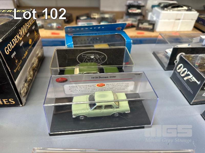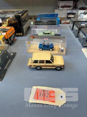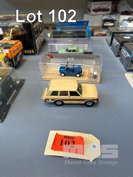 1974 LEYLAND P76 SEDAN, TARGA FLORIO, GREEN/SILVER STRIPES, 1970 DATSUN 1600 SEDAN, ASCOT GREEN, 1971 MORRIS MARINA 1300 SEDAN, LIME FLOWER, 1:43 SCALE, 1977 LEYLAND MOKE CALIFORNIAN, METALLIC BLUE, 1981 RANGE ROVER, 4 DOOR SEDAN, BEIGE/BROWN