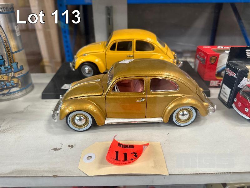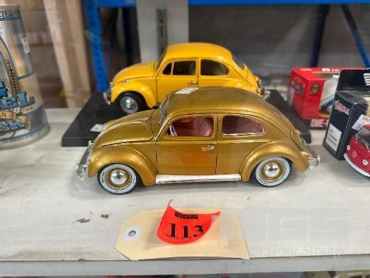 1967 VOLKSWAGEN BEETLE, YELLOW & 1955 VOLKSWAGEN BEETLE, METALLIC GOLD