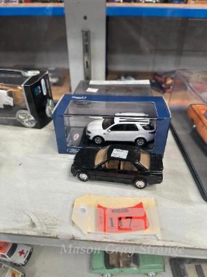 2016 FORD TERRITORY 4 DOOR SUV, WHITE, 1:43 SCALE, 1973 JAMES BOND MERCEDES BENZ SEDAN, 220, WHITE THE MAN WITH THE GOLDEN GUN, 1985 MERCEDES BENZ 190E SEDAN, BLACK