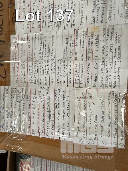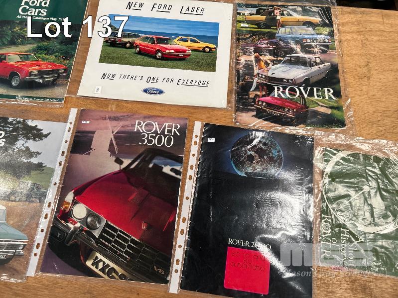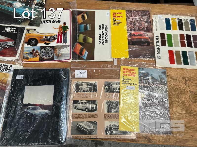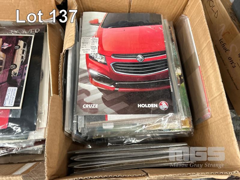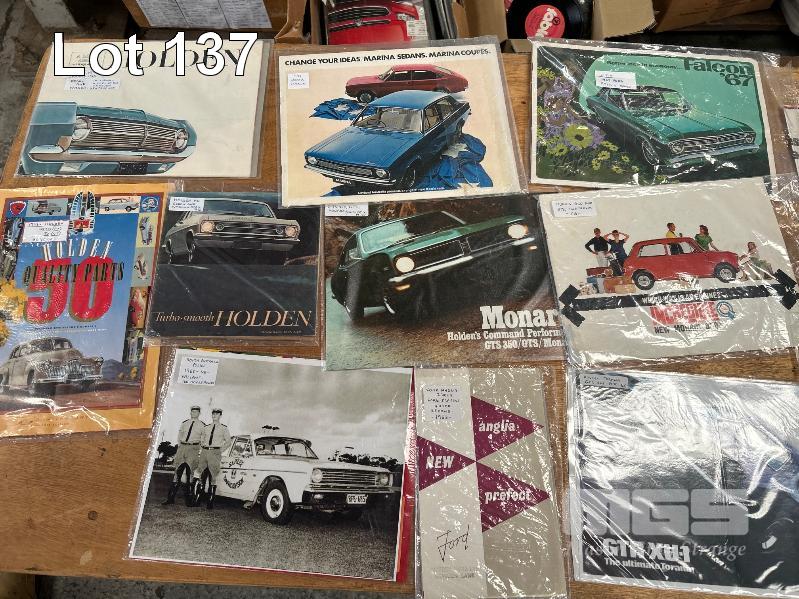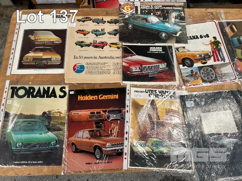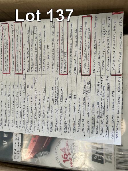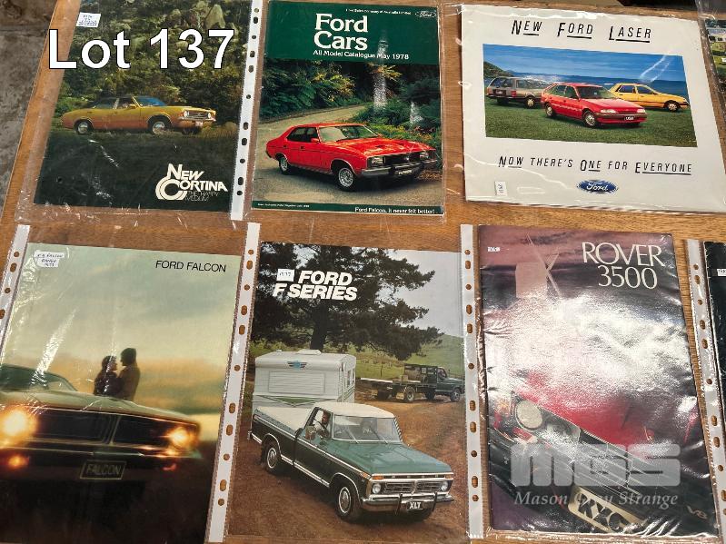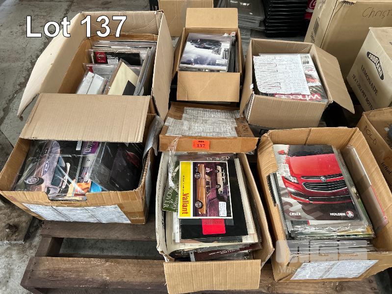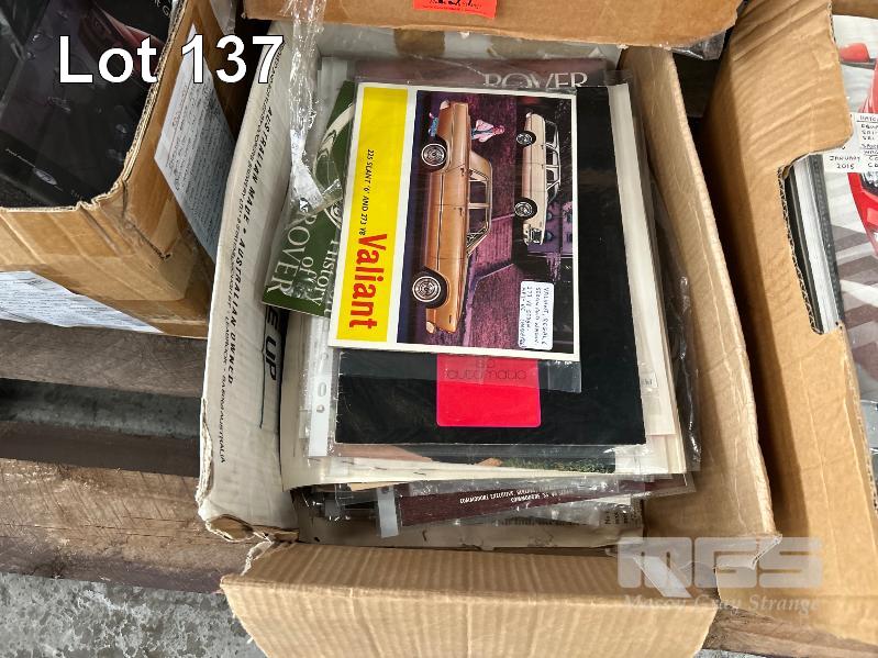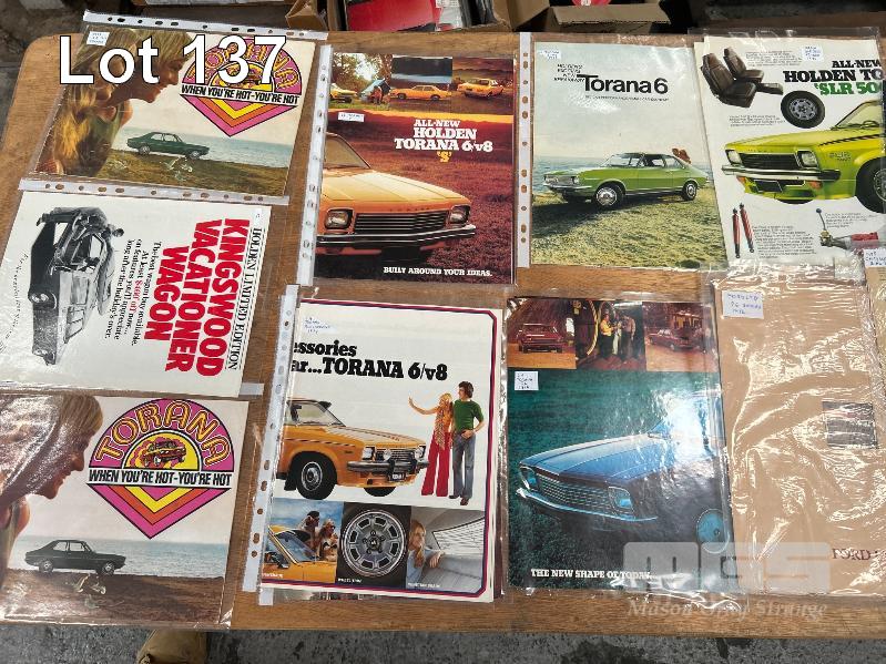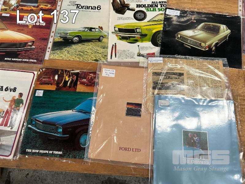 VINTAGE AND CLASSIC CAR ORIGINAL BROCHURES & MOTOR MAGAZINES, INCLUDING MONARO, FALCON, CORTINA, TORANA, GEMINI, PREMIER, ETC IMACULATE CONDINTION IN SEALED SLEAVES 6 X BOXES (1 x PALLET)