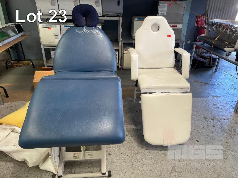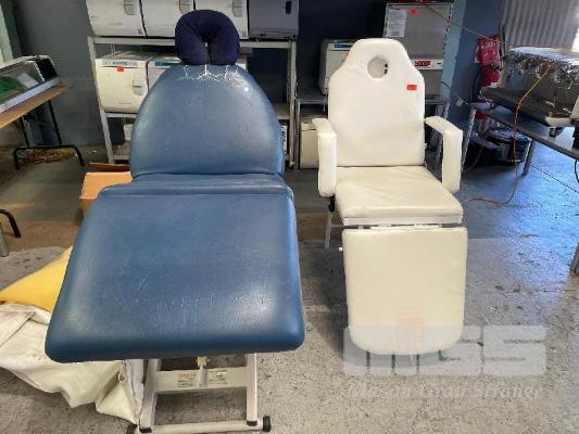 ELECTRIC MASSAGE TABLE, ATHLEGEN S/NO: A051533 WITH HEATED COVER & FOOT CONTROLS & BEAUTICIANS CHAIR, ADJUSTABLE INCLINE