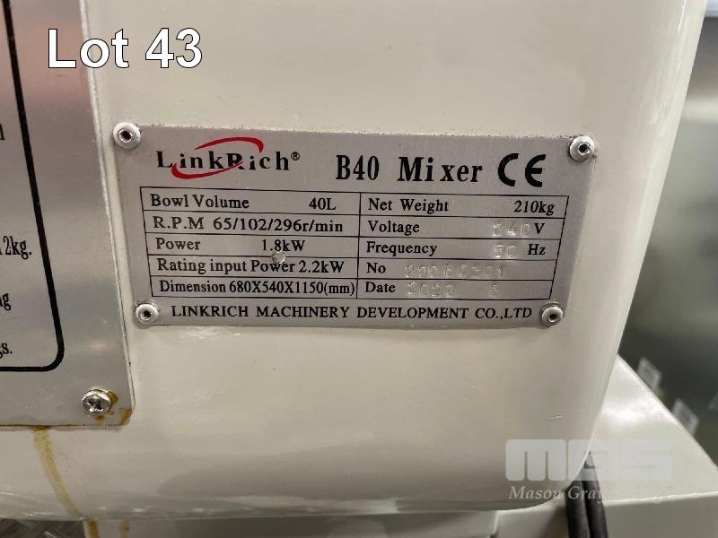 PLANETARY MIXER, LINK RICH MOD: B40 DOM: 2020 WITH BOWL & ACCESSORIES 240V, 10 AMP