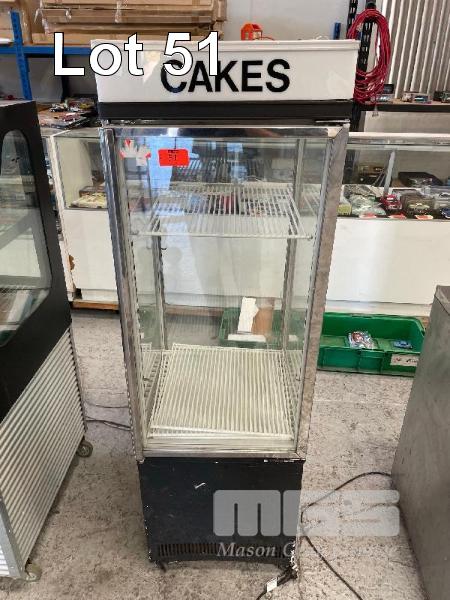 UPRIGHT CAKE DISPLAY, 4 WAY GLASS 120 LITRE APPROX 240V, 10 AMP PLUG