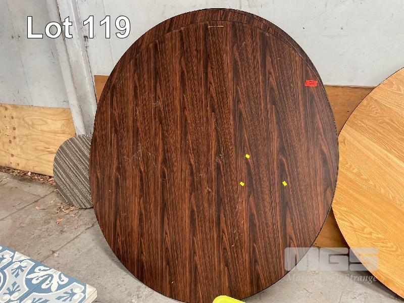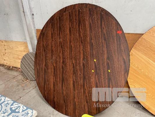 3 x BANQUET TABLES, 1800mm DIAMETER FOLDABLE METAL LEGS, WOOD LAMINATE