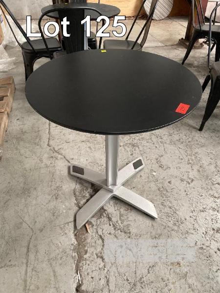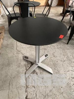 4 x CAFE TABLES, TILTING TOPS, 680mm (D), BLACK,ALLOY PEDESTAL BASE