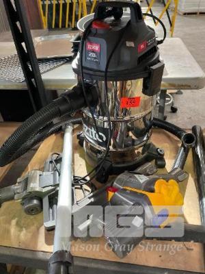 WET/DRY VACUUM CLEANER, OZITO 20 LITRE, 240V WITH DYSON CORDLESS VACUUM CLEANER & ACCESSORIES, NO CHARGER