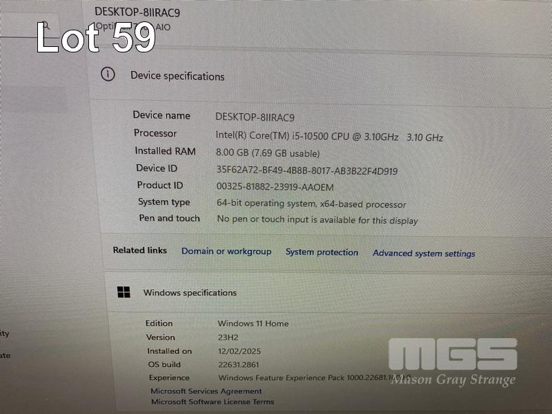 ALL-IN-ONE PC, DELL OPTIPLEX 7480, CORE i5 10500 (10TH GEN) @ 3.1GHz, 8GB DDR4 RAM, 512GB NVMe M.2 SSD, INBUILT 23.8" FHD WIDESCREEN (1920x1080), INTEL HD VIDEO, WEBCAM, 5 x USB, 1 x USB-C, WINDOWS 11 HOME INSTALLED, KEYBOARD & MOUSE S/N:HXSFX53