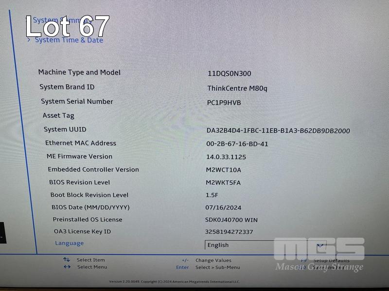 DESKTOP PC, LENOVO THINKCENTRE M80q TINY, TYPE 11DQ, CORE i5 10400T (10TH GEN) @ 2GHz, 8GB DDR4 RAM, 256GB NVMe M.2 SSD, INTEL UHD GRAPHICS 630, WINDOWS 11 HOME INSTALLED & POWER SUPPLY (NO KEYBOARD, NO MOUSE) S/N:PC1P9HVB