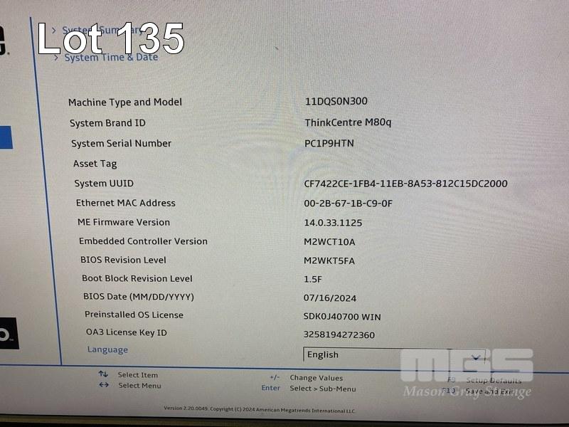DESKTOP PC, LENOVO THINKCENTRE M80q TINY, TYPE 11DQ, CORE i5 10400T (10TH GEN) @ 2GHz, 8GB DDR4 RAM, 256GB NVMe M.2 SSD, INTEL UHD GRAPHICS 630, WINDOWS 11 HOME INSTALLED & POWER SUPPLY (NO KEYBOARD, NO MOUSE) S/N:PC1P9HTN