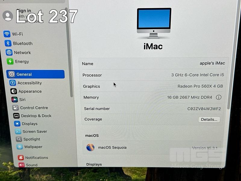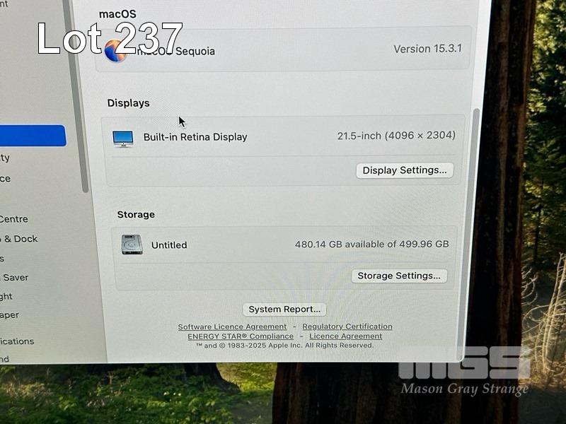 APPLE iMAC (A2116), CORE i5 8500 (8TH GEN) @ 3GHz, 16GB DDR4 RAM, 512GB SSD, BUILT-IN 21.5" RETINA DISPLAY (4096x2304), 4GB RADEON PRO 560X VIDEO, Wi-Fi, BLUETOOTH, MAC OS 15 INSTALLED, SATECHI KEYBOARD & MICROSOFT COMFORT 4500 MOUSE S/N:C02ZV04WJWF2