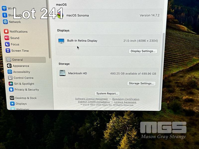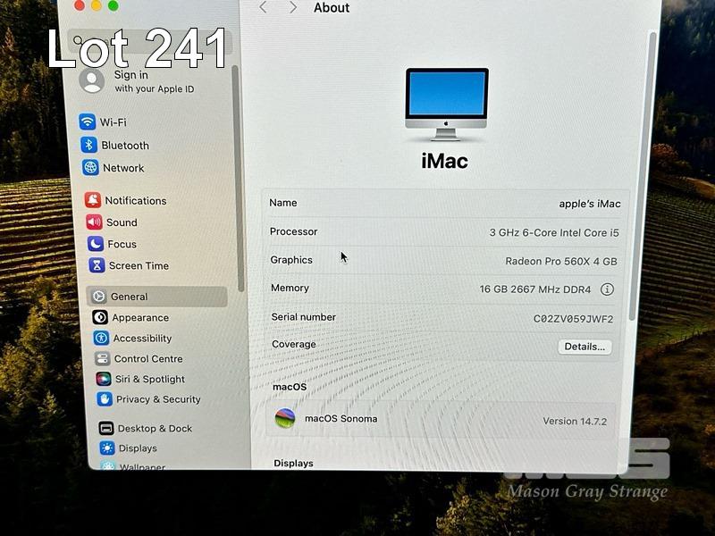 APPLE iMAC (A2116), CORE i5 8500 (8TH GEN) @ 3GHz, 16GB DDR4 RAM, 512GB SSD, BUILT-IN 21.5" RETINA DISPLAY (4096x2304), 4GB RADEON PRO 560X VIDEO, Wi-Fi, BLUETOOTH, MAC OS 14 INSTALLED, SATECHI KEYBOARD & MICROSOFT COMFORT 4500 MOUSE S/N:C02ZV059JWF2