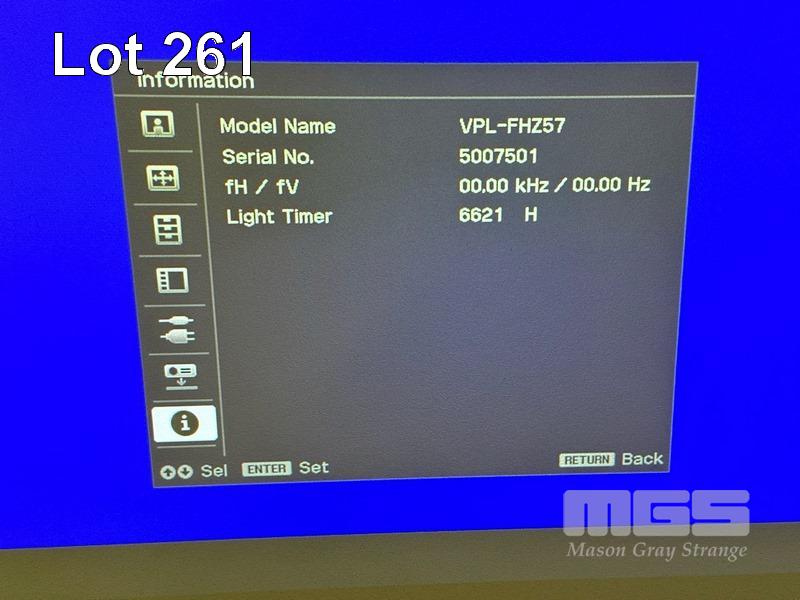 LASER PROJECTOR, SONY VPL-FHZ57 WUXGA 3LCD, 4,100 LUMENS, 6,621 HOURS SHOWING WITH REMOTE S/N:5007501