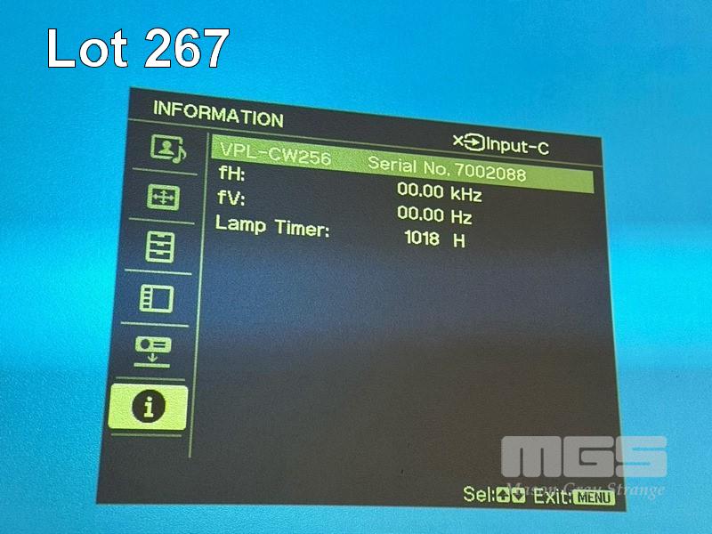 PROJECTOR, SONY VPL-CW256 3LCD, 4,500 LUMENS, 1,018 HOURS SHOWING (NO REMOTE) S/N:7002088