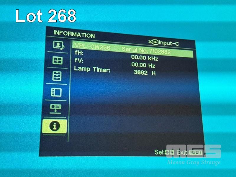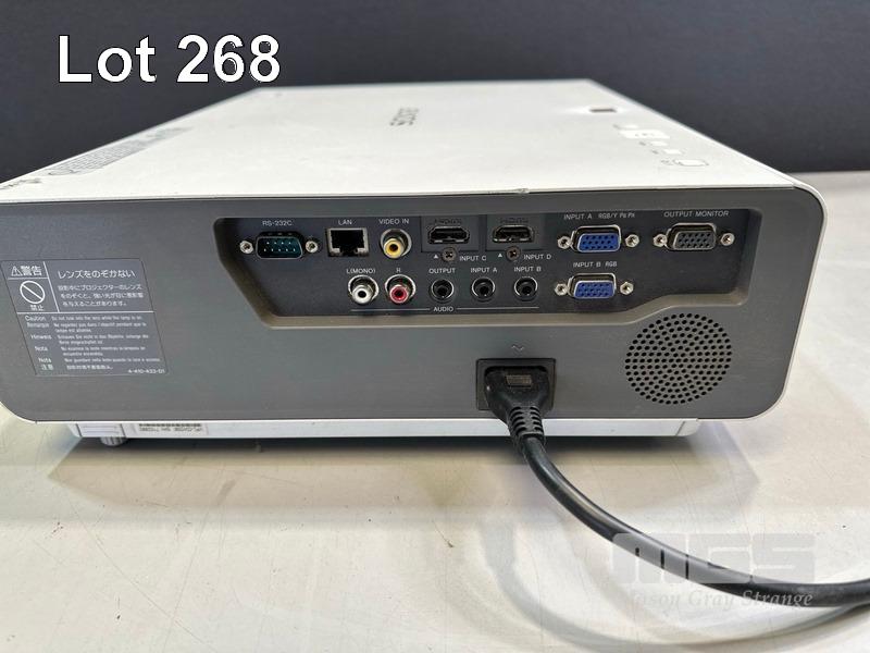 PROJECTOR, SONY VPL-CW256 3LCD, 4,500 LUMENS, 3,892 HOURS SHOWING (NO REMOTE) S/N:7102882