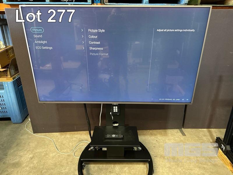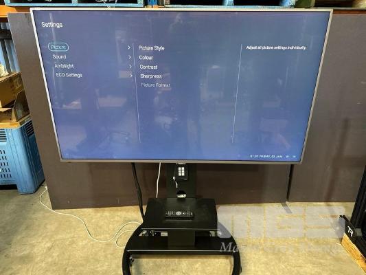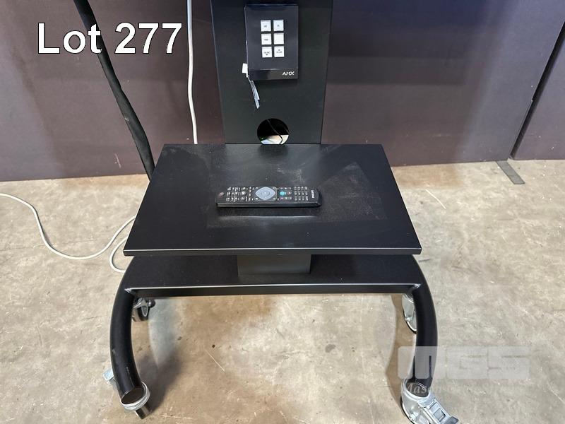 PHILIPS 65" COMMERCIAL 4K ULTRA HD LED DISPLAY, 65HFL7011T/12 & REMOTE WITH AMX PANEL, POWER BOARD & 5-PORT NETWORK SWITCH ON AMM MOBILE STAND S/N:FZ1A1727017786
