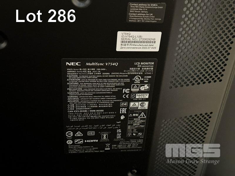 MONITOR, NEC MULTISYNC V754Q 75" COMMERCIAL UHD LCD DISPLAY (NO REMOTE, NO STAND) (NOTE: SCRATCH ON SCREEN) S/N:27206292NB