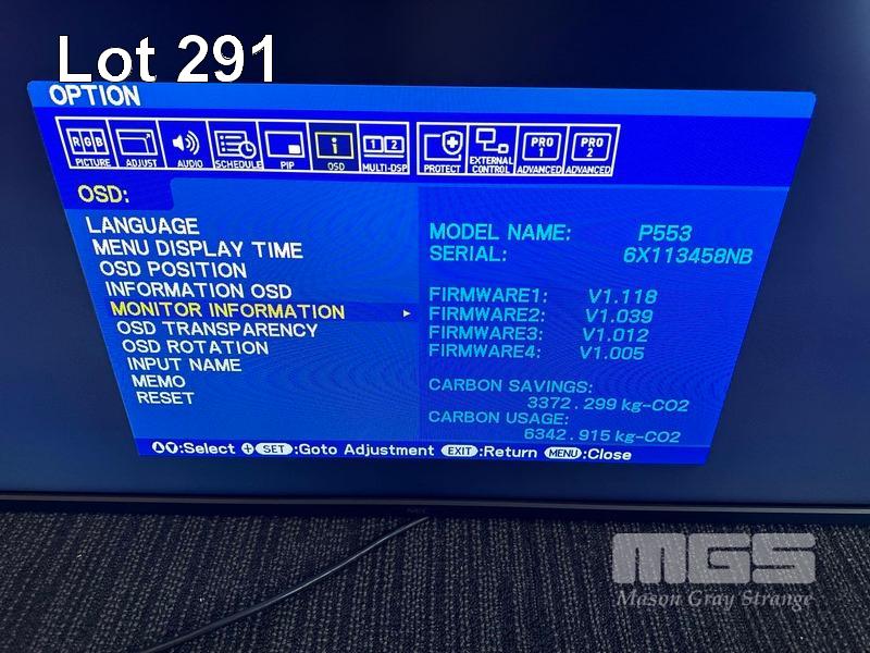 MONITOR, NEC MULTISYNC P553 55" COMMERCIAL LCD DISPLAY (NO REMOTE, NO STAND) (NOTE: SCRATCH ON SCREEN) S/N:6X113458NB