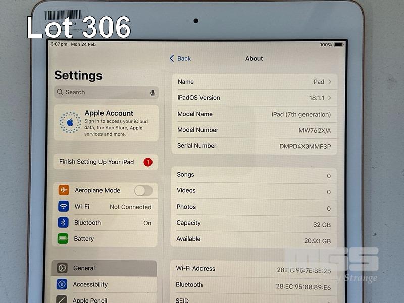 APPLE iPAD 7TH GEN, 32GB, Wi-Fi, GOLD, MODEL MW762X/A, A2197 (NO CABLE, NO CHARGER) S/N:DMPD4X0MMF3P