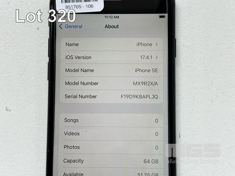 APPLE iPHONE SE, 64GB, BLACK, MODEL MX9R2X/A, BATTERY HEALTH 83% (NO CABLE, NO CHARGER) S/N:F19D9KBAPLJQ