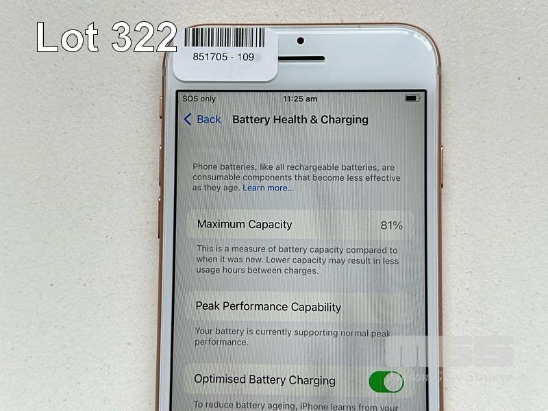 APPLE iPHONE 8, 64GB, GOLD, MODEL MQ6M2X/A, BATTERY HEALTH 81% (NO CABLE, NO CHARGER) S/N:C6KVJ9AHJC6F