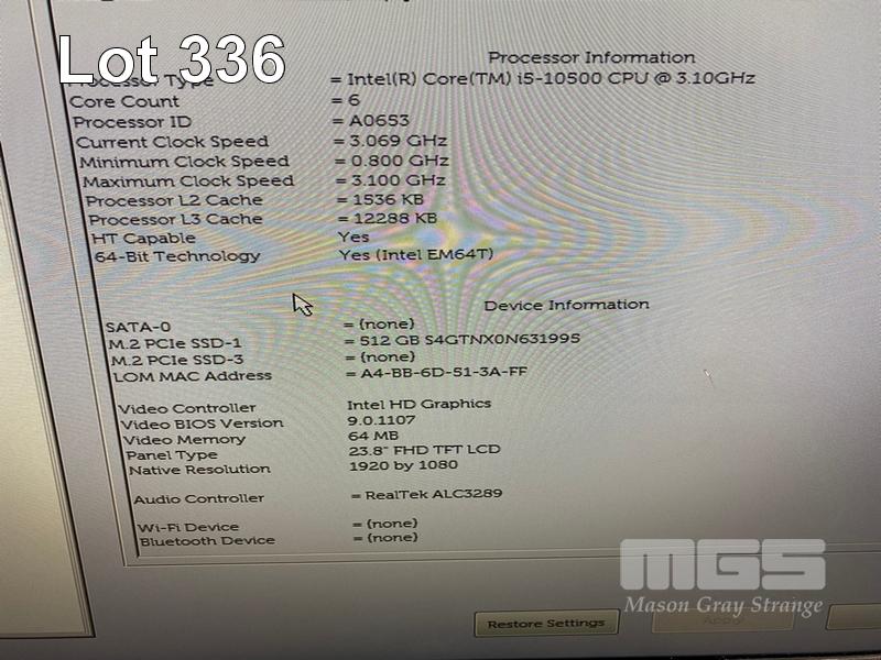 ALL-IN-ONE PC, DELL OPTIPLEX 7480, CORE i5 10500 (10TH GEN) @ 3.1GHz, 8GB DDR4 RAM, 512GB NVMe M.2 SSD, INBUILT 23.8" FHD WIDESCREEN (1920x1080), INTEL HD VIDEO, WEBCAM, 5 x USB, 1 x USB-C, WINDOWS 11 HOME INSTALLED, KEYBOARD & MOUSE (NOTE: SCRATCH ON SCREEN) S/N:HXWDX53