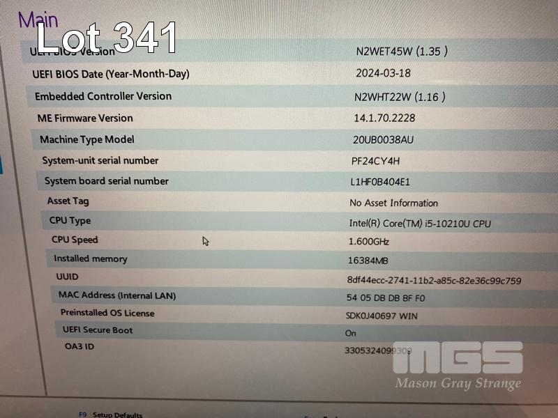 LAPTOP, LENOVO THINKPAD X1 YOGA (5TH GEN), TYPE 20UB, CORE i5 10210U (10TH GEN) @ 1.6GHz, 16GB DDR4 RAM, 256GB NVMe SSD, 14" TOUCHSCREEN (1920x1080), INTEL UHD GRAPHICS, Wi-Fi, BLUETOOTH, WINDOWS 11 PRO INSTALLED & USB-C POWER SUPPLY (NOTE: MARKS ON SCREEN) S/N:PF24CY4H