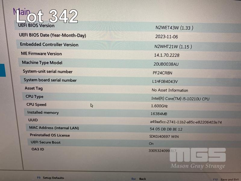 LAPTOP, LENOVO THINKPAD X1 YOGA (5TH GEN), TYPE 20UB, CORE i5 10210U (10TH GEN) @ 1.6GHz, 16GB DDR4 RAM, 256GB NVMe SSD, 14" TOUCHSCREEN (1920x1080), INTEL UHD GRAPHICS, Wi-Fi, BLUETOOTH, WINDOWS 11 PRO INSTALLED & USB-C POWER SUPPLY (NOTE: MARKS ON SCREEN) S/N:PF24CR8N