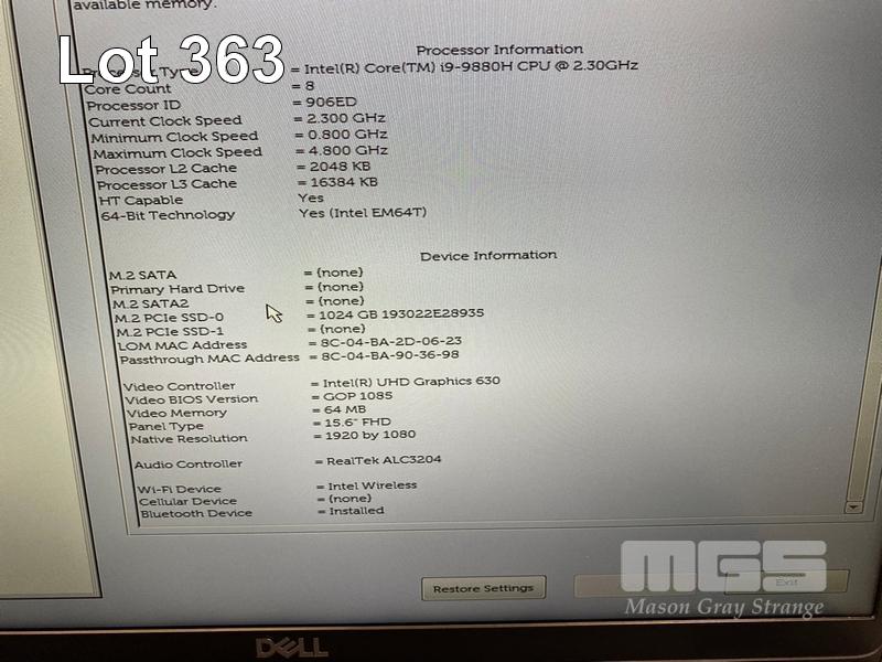 LAPTOP, DELL PRECISION 3541, CORE i9 9880H (9TH GEN) @ 2.3GHz, 32GB DDR4 RAM, 1TB NVMe M.2 SSD, 15.6" WIDESCREEN (1920x1080), INTEL UHD GRAPHICS, 4GB NVIDIA QUADRO P620 VIDEO, Wi-Fi, BLUETOOTH, WINDOWS 11 PRO INSTALLED & POWER SUPPLY S/N:8SJL2Z2