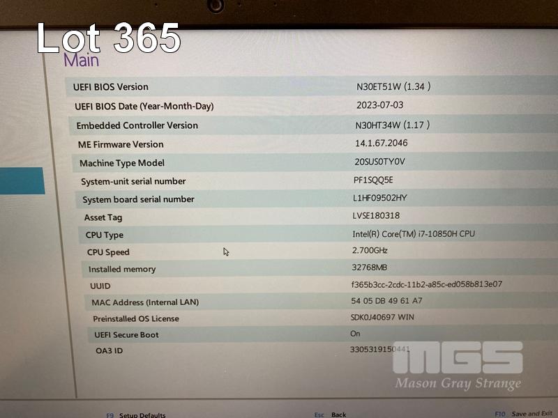 LAPTOP, LENOVO THINKPAD P15 GEN 1 MOBILE WORKSTATION, TYPE 20SU, CORE i7 10850H (10TH GEN) @ 2.7GHz, 32GB DDR4 RAM, 1TB NVMe M.2 SSD, 15.6" WIDESCREEN (1920x1080), 4GB NVIDIA QUADRO T2000 VIDEO, Wi-Fi, BLUETOOTH, WINDOWS 11 PRO INSTALLED & POWER SUPPLY (NOTE: MINOR MARKS ON SCREEN) S/N:PF1SQQ5E