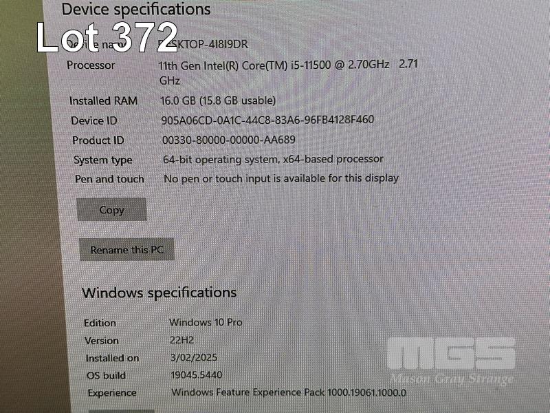 MIDI-TOWER PC, CUSTOM BUILT, ANTEC CASE, CORE i5 11500 (11TH GEN) @ 2.7GHz, 16GB DDR4 RAM, 250GB SSD, WINDOWS 10 PRO INSTALLED (NO KEYBOARD, NO MOUSE)