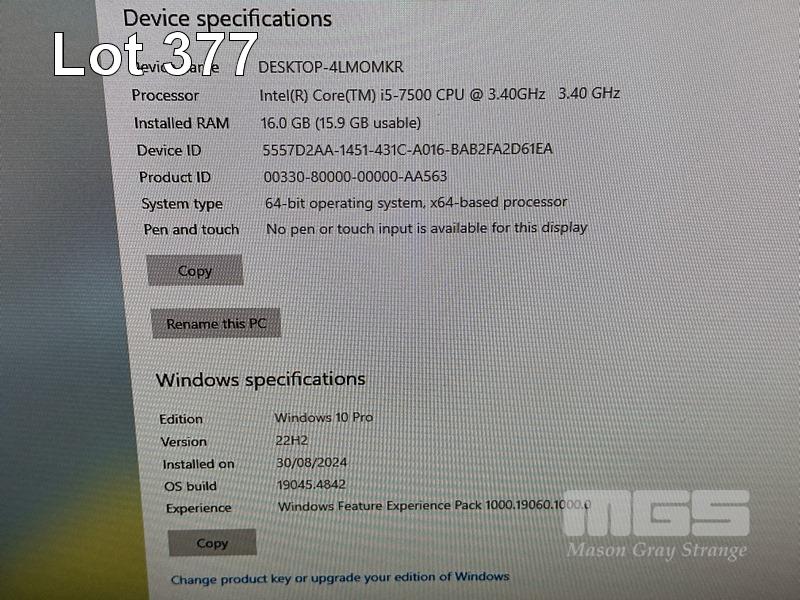 DESKTOP PC, CUSTOM BUILT, CORE i5 7500 (7TH GEN) @ 3.4GHz, 16GB DDR4 RAM, 250GB SSD, WINDOWS 10 PRO INSTALLED (NO KEYBOARD, NO MOUSE)