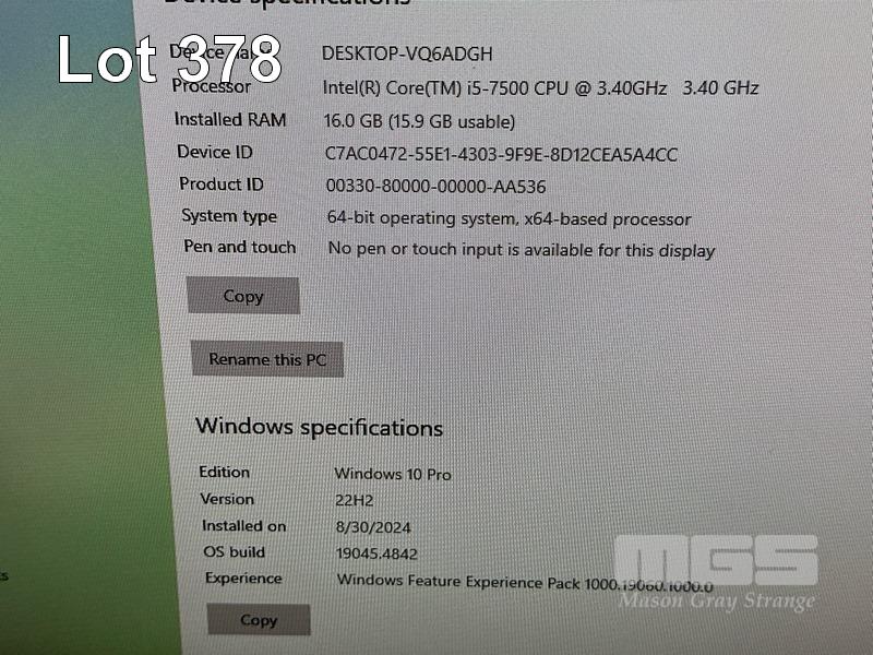 DESKTOP PC, CUSTOM BUILT, CORE i5 7500 (7TH GEN) @ 3.4GHz, 16GB DDR4 RAM, 250GB SSD, WINDOWS 10 PRO INSTALLED (NO KEYBOARD, NO MOUSE)