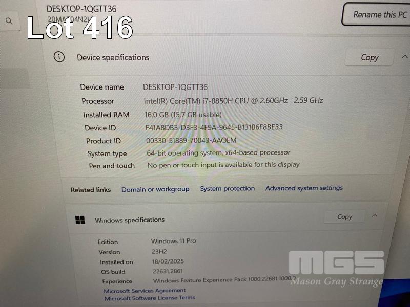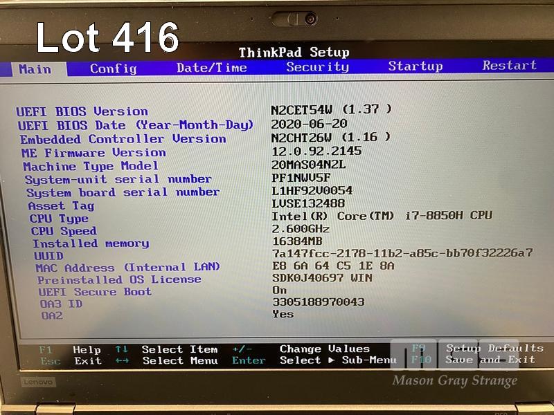 LAPTOP, LENOVO THINKPAD P52 MOBILE WORKSTATION, TYPE 20MA, CORE i7 8850H (8TH GEN) @ 2.6GHz, 16GB DDR4 RAM, 512GB NVMe M.2 SSD, 15.6" WIDESCREEN (1920x1080), 4GB NVIDIA QUADRO P2000 VIDEO, Wi-Fi, BLUETOOTH, WINDOWS 11 PRO INSTALLED & POWER SUPPLY S/N:PF1NWV5F