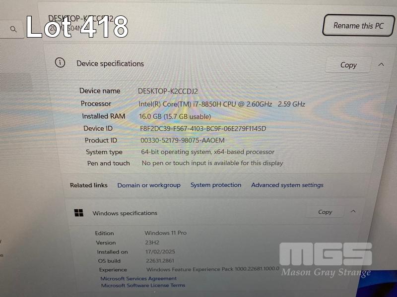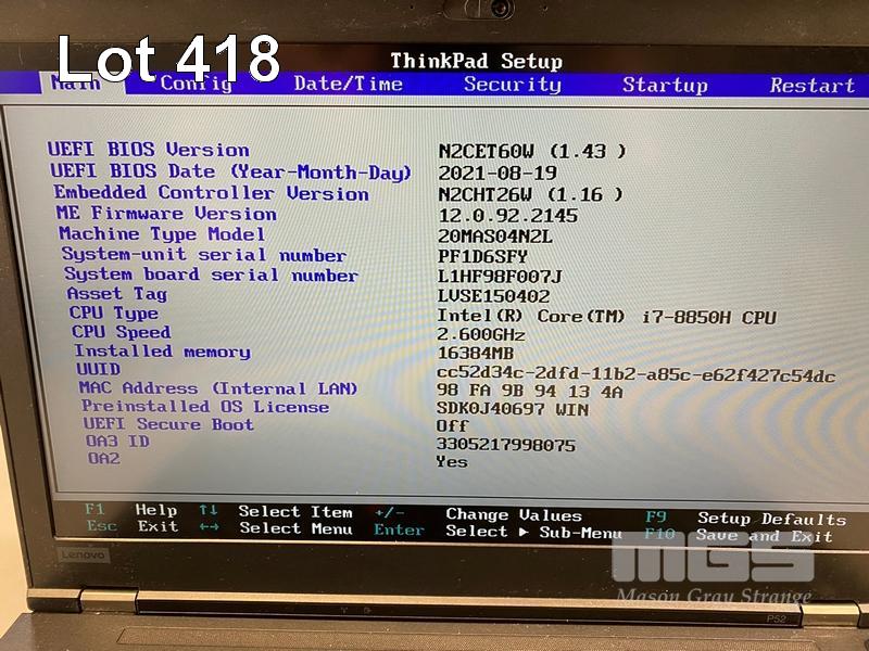 LAPTOP, LENOVO THINKPAD P52 MOBILE WORKSTATION, TYPE 20MA, CORE i7 8850H (8TH GEN) @ 2.6GHz, 16GB DDR4 RAM, 512GB NVMe M.2 SSD, 15.6" WIDESCREEN (1920x1080), 4GB NVIDIA QUADRO P2000 VIDEO, Wi-Fi, BLUETOOTH, WINDOWS 11 PRO INSTALLED & POWER SUPPLY (NOTE: MARKS ON SCREEN) S/N:PF1D6SFY