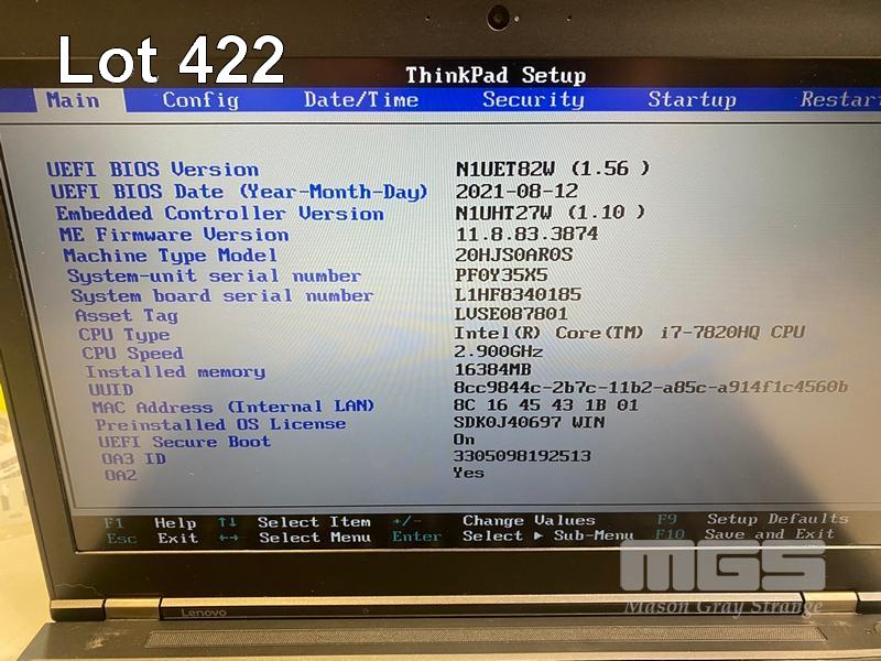LAPTOP, LENOVO THINKPAD P51 MOBILE WORKSTATION, TYPE 20HJ, CORE i7 7820HQ (7TH GEN) @ 2.9GHz, 16GB DDR4 RAM, 500GB NVMe M.2 SSD, 15.6" WIDESCREEN (1920x1080), 4GB NVIDIA QUADRO M2200 VIDEO, Wi-Fi, BLUETOOTH, WINDOWS 10 PRO INSTALLED (NO POWER SUPPLY) S/N:PF0Y35X5
