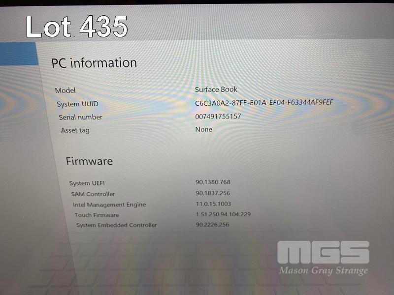 LAPTOP, MICROSOFT SURFACE BOOK, MODEL 1703, CORE i7 6600U (6TH GEN) @ 2.6GHz, 8GB DDR3 RAM, 256GB M.2 SSD, 13.5" TOUCHSCREEN (3000x2000), Wi-Fi, BLUETOOTH, WINDOWS 10 PRO INSTALLED (NO POWER SUPPLY) S/N:007491755157