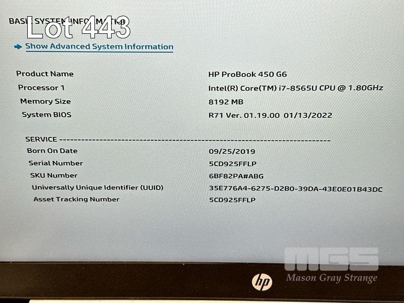 LAPTOP, HP PROBOOK 450 G6, CORE i7 8565U (8TH GEN) @ 1.8GHz, 8GB DDR4 RAM, 256GB NVMe M.2 SSD, 15.6" WIDESCREEN (1920x1080), INTEL UHD GRAPHICS 620, 2GB NVIDIA GEFORCE MX130 VIDEO, Wi-Fi, BLUETOOTH, WINDOWS 11 PRO INSTALLED & POWER SUPPLY S/N:5CD925FFLP