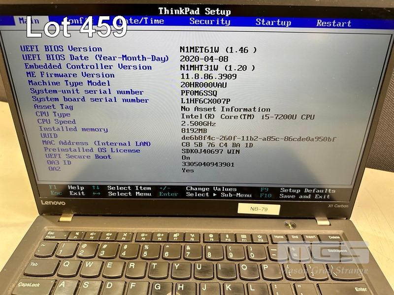 LAPTOP, LENOVO THINKPAD X1 CARBON, TYPE 20HR, CORE i5 7200U (7TH GEN) @ 2.5GHz, 8GB DDR4 RAM, 256GB NVMe M.2 SSD, 14" WIDESCREEN (1920x1080), INTEL HD VIDEO, Wi-Fi, BLUETOOTH, WINDOWS 10 PRO INSTALLED & USB-C POWER SUPPLY (NOTE: MARKS ON SCREEN) S/N:PF0M6SSQ