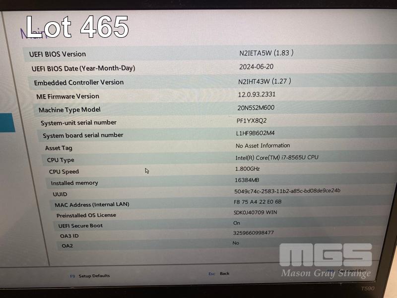 LAPTOP, LENOVO THINKPAD T590, TYPE 20N5, CORE i7 8565U (8TH GEN) @ 1.8GHz, 16GB DDR4 RAM, 256GB NVMe M.2 SSD, 15.6" TOUCHSCREEN (1920x1080), INTEL UHD GRAPHICS, Wi-Fi, BLUETOOTH, WINDOWS 11 HOME INSTALLED (NO USB-C POWER SUPPLY) (NOTE: MARKS ON SCREEN) S/N:PF1YX8Q2